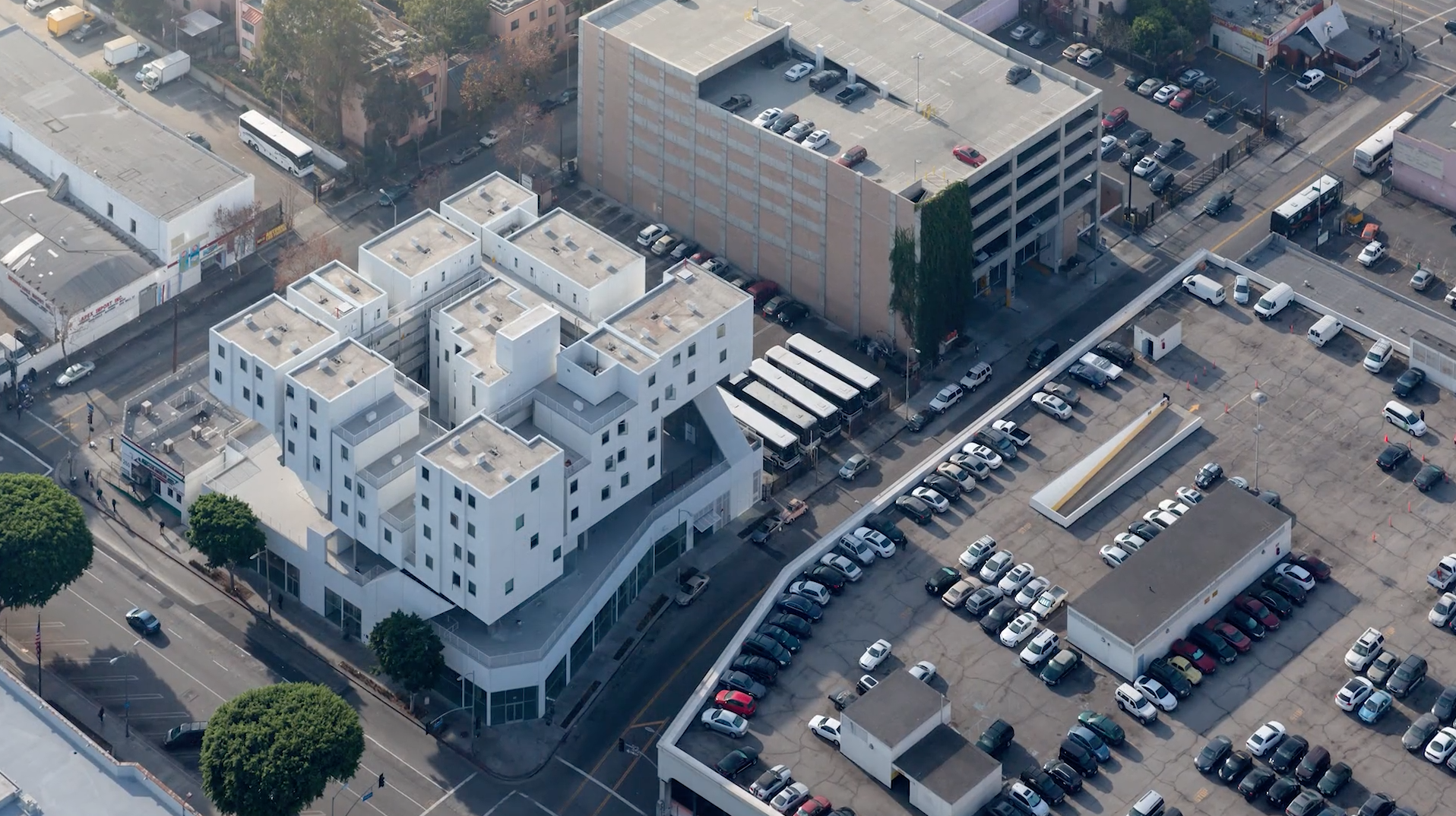 A montage of aerial footage allows the viewer to better understand the Star within the greater context of downtown Los Angeles.